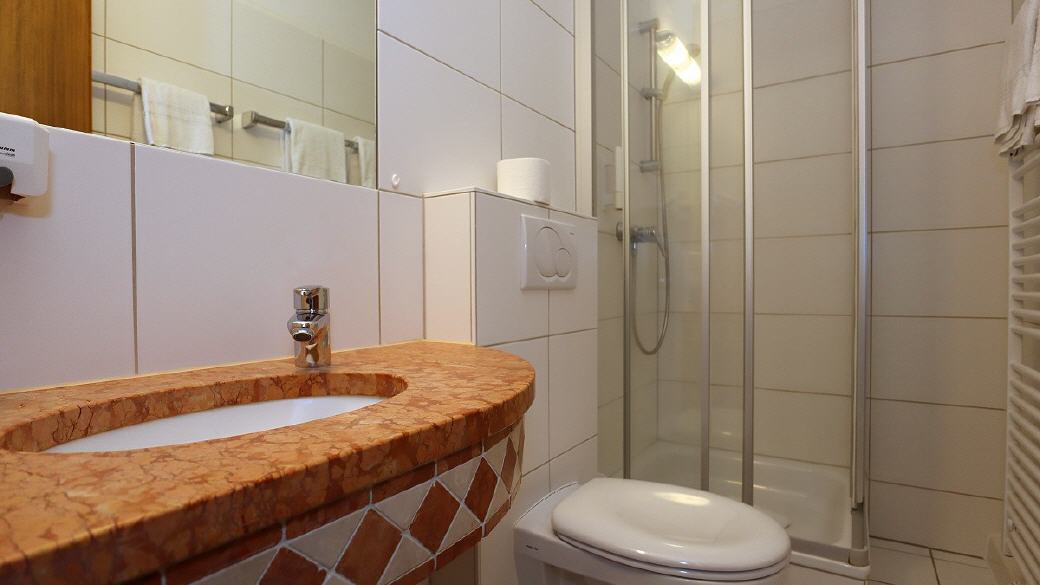 - Zimmer mit Dusche, WC, TV, Telefon und Balkon, pro Person 70 bis 80 Euro im DZ